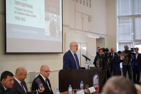 | Председатель Свердловского областного суда Владимир Андреевич Дмитриев принял участие в презентации книги депутата Государственной Думы, известного правоведа П.В. Крашенинникова «На пути к сверхдержаве. Государство и право во времена войны и мира (1939–1953)». Автор исследует исторические моменты развития государственно-правовых отношений в СССР в до- и послевоенный период с 1939 по 1953 годы, издание стало седьмой книгой П.В.Крашенинникова в серии, посвященной становлению государственного права в России. Презентация книги состоялась в Уральском государственном юридическом университете им. В.Ф. Яковлева с участием полномочного представителя Президента России в УрФО А.В. Жоги и Губернатора Свердловской области Е.В. Куйвашева, председателя ЗАКСО Л.В. Бабушкиной и вызвала живой интерес в научной среде и практикующих юристов. Издание рассчитано на широкий круг читателей. Участники мероприятия обсудили не только содержание книги, но и актуальность поднятых в ней вопросов для современности. фото: УрГЮУ им. В.Ф. Яковлева
