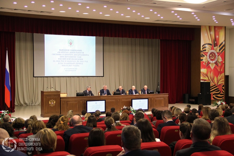 | В Свердловском областном суде проходит совещание руководящего состава Судебного департамента при Верховном Суде Российской Федерации с начальниками региональных управлений, посвященное итогам работы ведомства за 2024 год и задачам на предстоящий двухлетний период. Накануне руководство Судебного департамента при Верховном Суде России посетило 17 судов Свердловской области, в том числе Арбитражный суд Свердловской области и Арбитражный суд Уральского округа, Свердловский областной суд. В ходе встречи состоялся разговор с коллективами об организации работы судов, об основных проблемах, с которыми сталкиваются судьи и работники аппаратов, а также о возможных путях их решений. Коллектив Свердловского областного суда волновали вопросы нормирования судебной нагрузки, финансирования судов, повышения заработной платы судьям и работникам аппаратов судов. Как отметил генеральный директор Судебного департамента при Верховном Суде России Вячеслав Анатольевич Иванов, все эти моменты находятся на постоянном контроле и Судебного департамента и председателя Верховного суда Российской Федерации Ирины Леонидовны Подносовой и со временем они будут решаться.