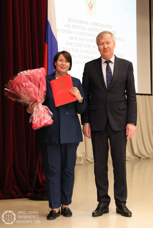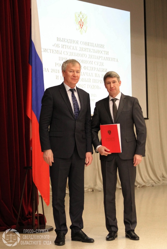 В ходе встречи В.А. Иванов вручил благодарственные письма председателю Свердловского областного суда В.А. Дмитриеву и руководителю Объединенной пресс-службы судов Свердловской области Е.А. Масленниковой за участие в мероприятиях по взаимодействию с Судебным департаментом при Верховном Суде Российской Федерации, направленных на организационное обеспечение органов правосудия Российской Федерации. Также были вручены награды пресс-службе Свердловского областного суда за третье место во Всероссийском конкурсе пресс-служб судов и органов Судебного департамента при ВС РФ. Это заслуженная оценка труда и профессионализма коллектива, что подчеркивает значимость эффективного информирования общественности о работе судов.