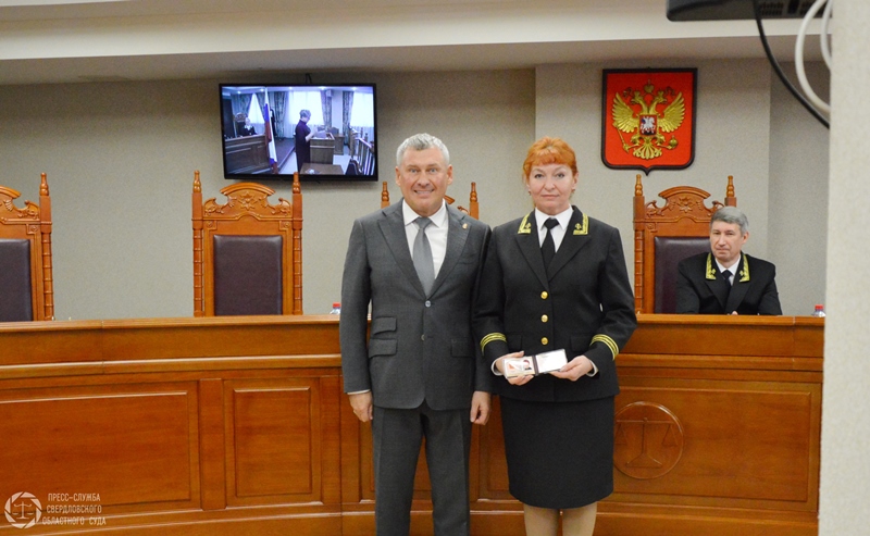 | Сегодня во Дворце правосудия главный федеральный инспектор Свердловской области Михаил Вячеславович Богинский вручил удостоверение председателю Сухоложского городского суда Елене Николаевне Барковой. Она назначена на должность Указом Президента Российской Федерации от 17 апреля 2025 года № 244 на 6-ти летний срок полномочий. Также были вручены ведомственные награды. Приказом Судебного департамента при Верховном Суде Российской Федерации за значительный личный вклад в развитие судебной системы, всестороннее содействие в укреплении и совершенствовании правосудия в Российской Федерации медалью «За безупречную службу» награждена помощник судьи судебной коллегии по уголовным делам Свердловского областного суда Анастасия Александровна Ахмадуллина. Знак отличия Судебного департамента при Верховном Суде Российской Федерации «За усердие» II степени вручен помощнику судьи судебной коллегии по административным делам Свердловского областного суда Екатерине Сергеевне Аристовой.