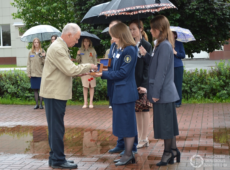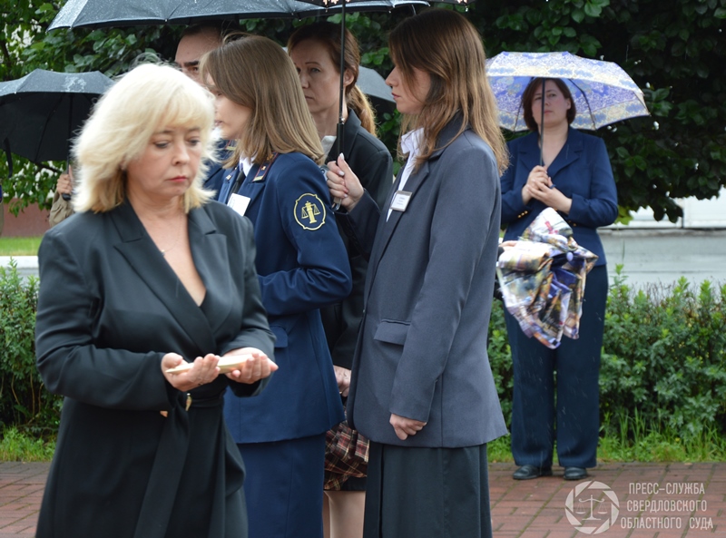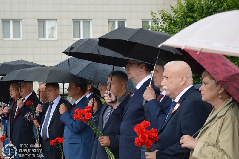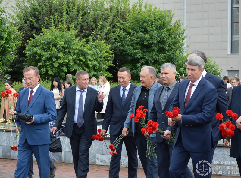 Все собравшиеся почтили память коллег-фронтовиков и всех, сложивших головы на фронтах войны, минутой молчания и возложили цветы к Мемориалу погибшим и умершим судьям и работникам аппарата судов Свердловской области – ветеранам войны и труженикам тыла, а также к бюстам героев на Аллее Славы.