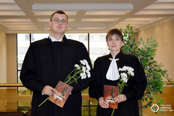 Сегодня во Дворце правосудия в торжественной обстановке приведены к присяге вновь назначенные судьи. Свои первые мантии получили Кучин Данил Романович, судья Кировского районного суда г.Екатеринбурга и Новоселова Елена Юрьевна, судья Красногорского районного суда г. Каменска-Уральского. Они назначены на должности Указом Президента Российской Федерации от 16 августа 2025 года №565 «О назначении судей федеральных судов». Ранее Д.Р. Кучин работал помощником судьи, Е.Ю. Новоселова – старшим помощником прокурора г. Красноуральска. С напутственным словом к вновь назначенным судьям обратился и.о. председателя Свердловского областного суда Борис Викторович Романов. Он пожелал им вершить суд скорый, правый и справедливый, всегда помнить, что судьи работают для людей, а также пожелал удачи на выбранном непростом пути. По традиции вновь назначенные судьи возложили цветы к мемориалу судей и сотрудников судов – участников Великой Отечественной войны и тружеников тыла.
