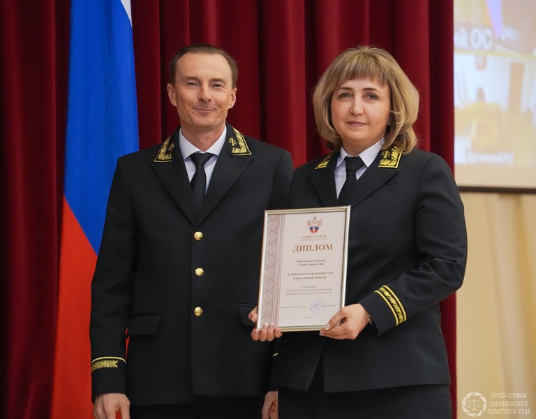 | В ходе совещания по подведению итогов работы районных (городских) судов и мировых судей Свердловской области были озвучены победители конкурса «Грани правосудия». Постановлением совета судей Свердловской области в области открытости и гласности правосудия за 2025 победителем в номинации «Взаимодействие со средствами массовой информации» был признан Кировский районный суд Екатеринбурга, председатель суда Евладова Александра Анатольевна. Благодарственным письмом совета судей Свердловской области в данной номинации отмечен Красноуральский городской суд, председатель суда Солобоева Ольга Александровна. В номинации «Я горжусь своим судом» победителем премии признан Железнодорожный районный суд Екатеринбурга, председатель суда Иванова Елена Михайловна. Также благодарственными письмами совета судей за активное участие награждены Невьянский городской и Камышловский районный суды. В номинации «Значимые мероприятия, нацеленные на повышение авторитета судебной власти» дипломом победителя награжден Алапаевский городской суд, председатель Маракова Юлия Сергеевна. Благодарственные письма совета судей региона вручены председателям Кировского районного суда Екатеринбурга, Кушвинского и Режевского городских судов области.